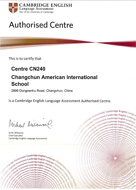 Cambridge Authorised Centre Certificate