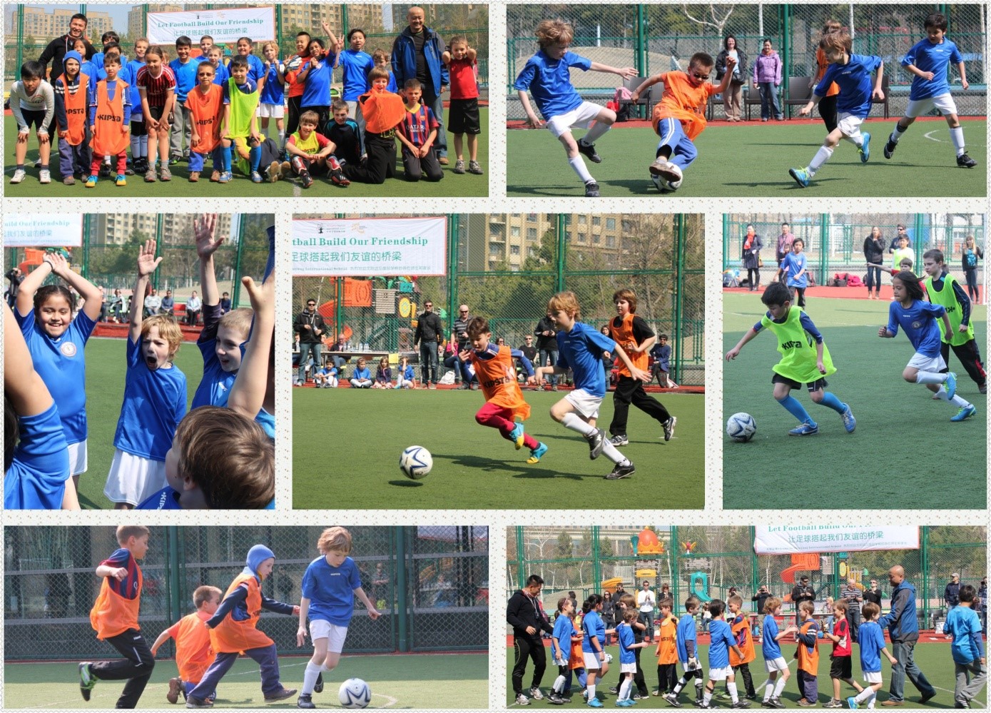 Around 40 primary students and parents of Shanyang International School were invited to HWIS on Sunday, March 30th, 2014. As planned, two football matches were held between HWIS and SYIS under the beautiful sunshine. SYIS won in the morning by a score of 4:1, and HWIS won in 7:5 the afternoon. Like the student said: “No matter who wins the game, football built the friendship between us!”
